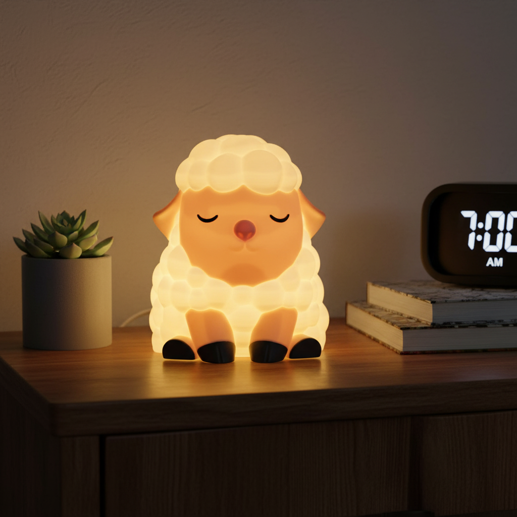 This delightful 3D printed sheep lamp casts a soft, diffused light, creating a peaceful ambiance perfect for bedrooms or nurseries. Crafted for comfort and charm.